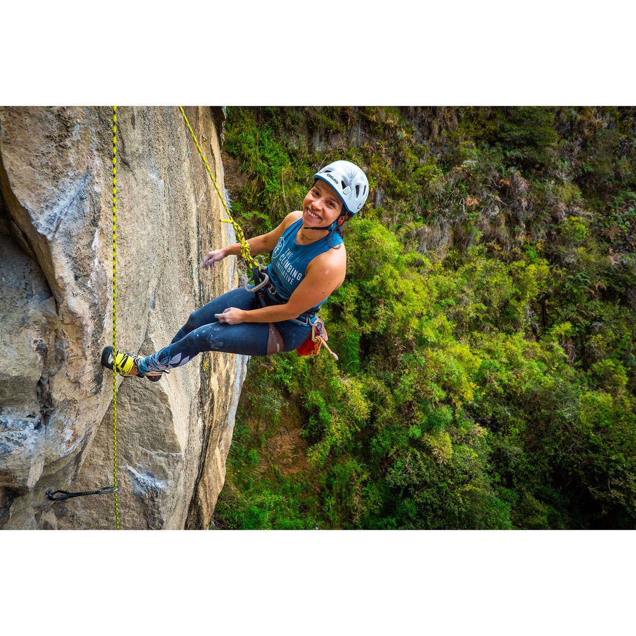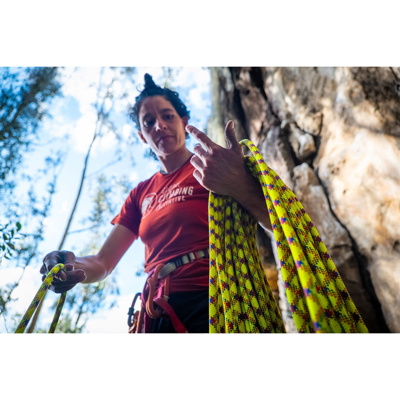The VR ECO 9.6mm Limited Edition Colombia Rope combines performance with purpose. Built on the proven VR9 series of ropes with a sleeker 9.6mm diameter, this rope features ISCC-certified ECO yarns made from recycled materials that reduce carbon emissions by up to 78%*. Net proceeds support the Global Climbing Initiative's Climbing Leadership Fund, making every send count by expanding access to climbing for rural youth in Colombia. Made in the USA.